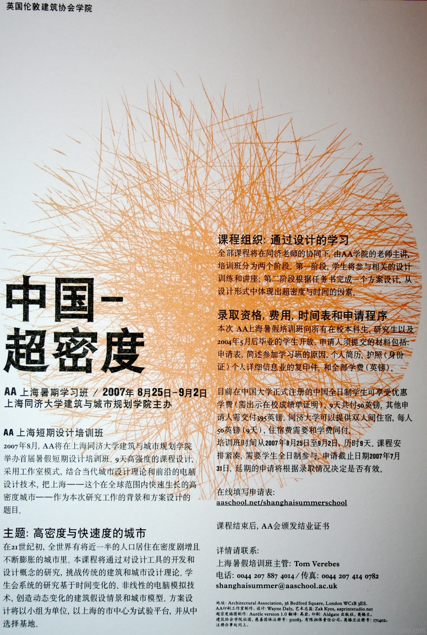 AAschool 上海暑期課程:在校學生優惠价 50鎊學費,50鎊住宿(匯率1:15).課程結束頒發AA結業證書。