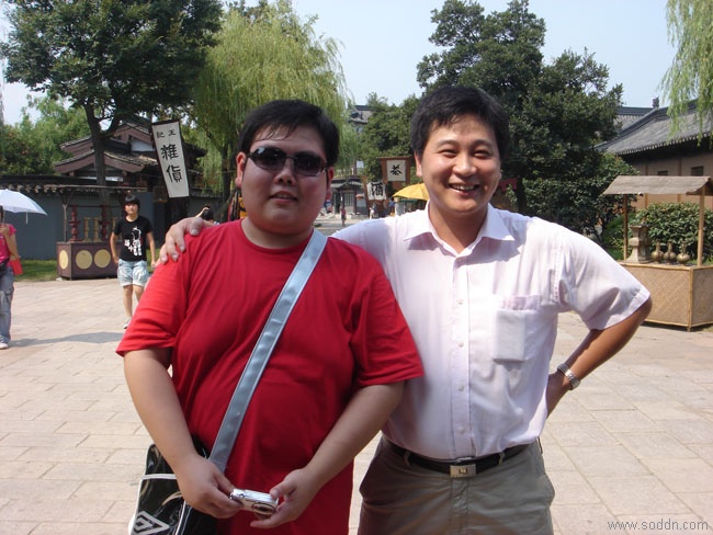 我和网络小胖在无锡的水浒城.小胖对影片<<良>>赞不绝口,并表示愿意成为续集的角色候选人.