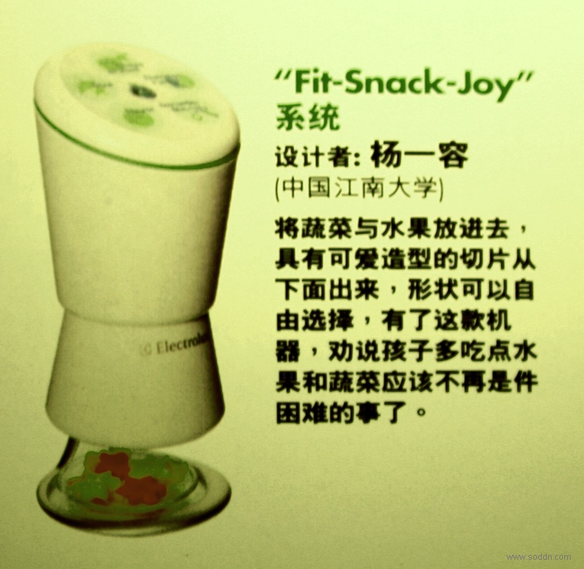 从2007年第一期ELLE DECORATION上,惊喜地看到2006年度“伊莱克斯DESIGN LAB竞赛中决赛入围作品中,出现了中国江南大学——杨一容 同学的”Fit-Snack-Joy"系统。并非学工业设计而且已毕业的我也感到无比的骄傲,赶紧拿去给欢哥看。