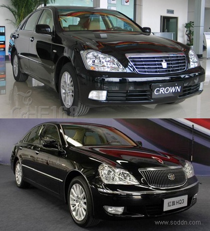 另外,横着看了一下原图,这红旗好像另一辆车啊~~~(压扁了是恶搞甲壳虫,放平了是丰田新皇冠)