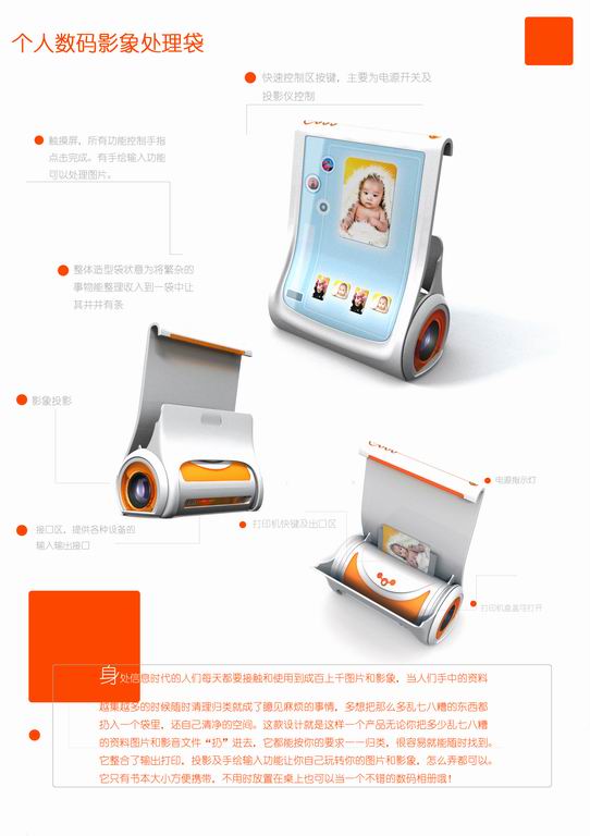 这个东东针对年轻人,模仿购物袋子的形状,把纷杂的事物通通装进去,但是在产品功能上做了一个简单的联系,从而有了一个明确的核心--影象,