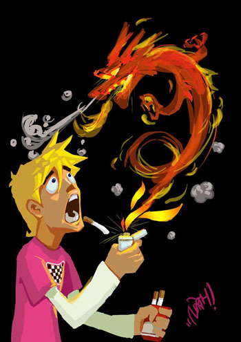 哈哈,这是我没事时想到的,我觉得抽烟挺酷的(仅仅在画中,呵呵)有时候画这种小画还挺开心的.最近作业多,也没时间画这种画了.以后会把以前无聊时画的手绘稿发上,希望大家多多给意见啊~