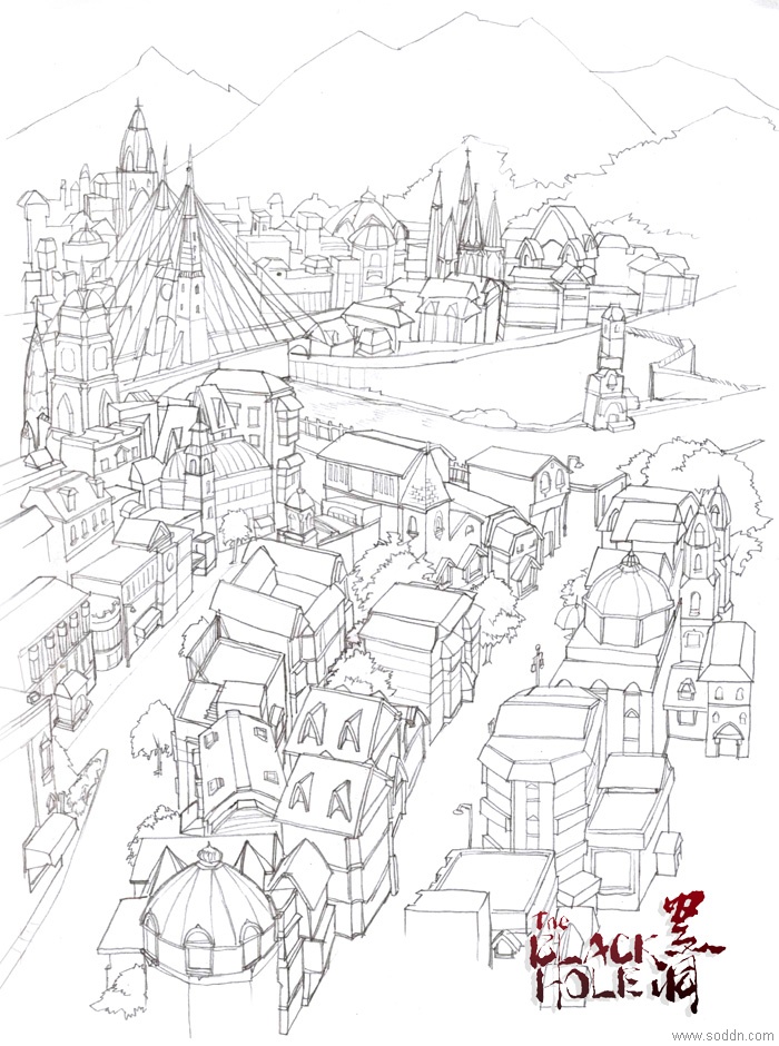 下面放一些场景的线稿图,其实都是老图了。